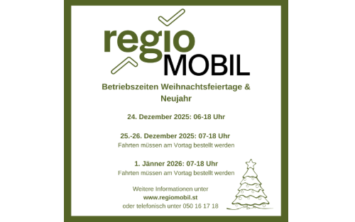 Weitere Informationen unter www.regiomobil.st oder telefonisch unter 050 16 17 18