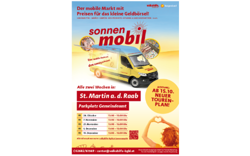 Das Sonnenmobil ist alle zwei Wochen von 13:00 bis 15:00 Uhr für Sie unterwegs.
