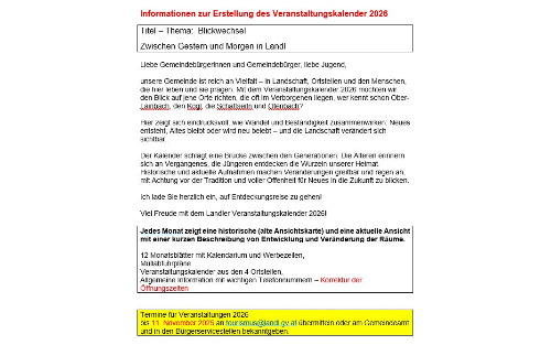 Terminaviso: Abgabe der Veranstaltungen 2026 für den gemeinsamen Veranstaltungskalender bis 11.November