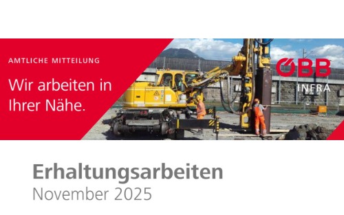 Erhaltungsarbeiten der ÖBB vom 26.11. bis 28.11.2025