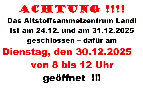 ASZ Landl Öffnungszeiten während der Feiertage