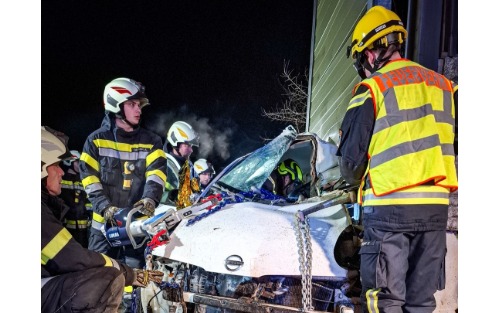 Ein PKW kam aus noch ungeklärter Ursache von der Fahrbahn ab und prallte mit voller Wucht seitlich gegen das Tor eines Serviceparkplatzes. Durch die enorme Wucht des Aufpralls wurde das massive Tor durchbrochen und der PKW schwer deformiert. Die Lenkerin wurde dabei im Fahrzeugwrack eingeklemmt.