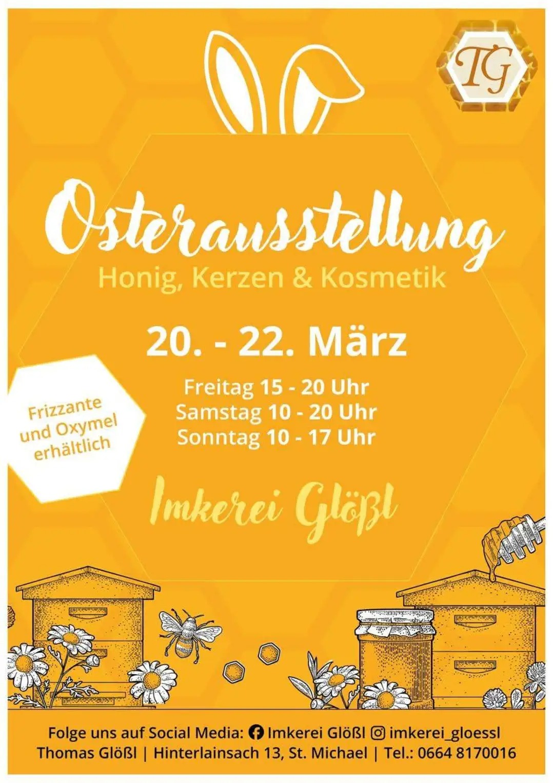 Am vergangenen Wochenende lud die Imkerei Glößl zu einer kleinen, liebevoll gestalteten Osterausstellung ein. Präsentiert wurden hochwertige Naturprodukte aus der Region – von Honig über handgefertigte Kerzen bis hin zu pflegender Naturkosmetik und vielem mehr. Ein Besuch hat sich auf jeden Fall gelohnt: regional, nachhaltig und mit viel Herz hergestellt.