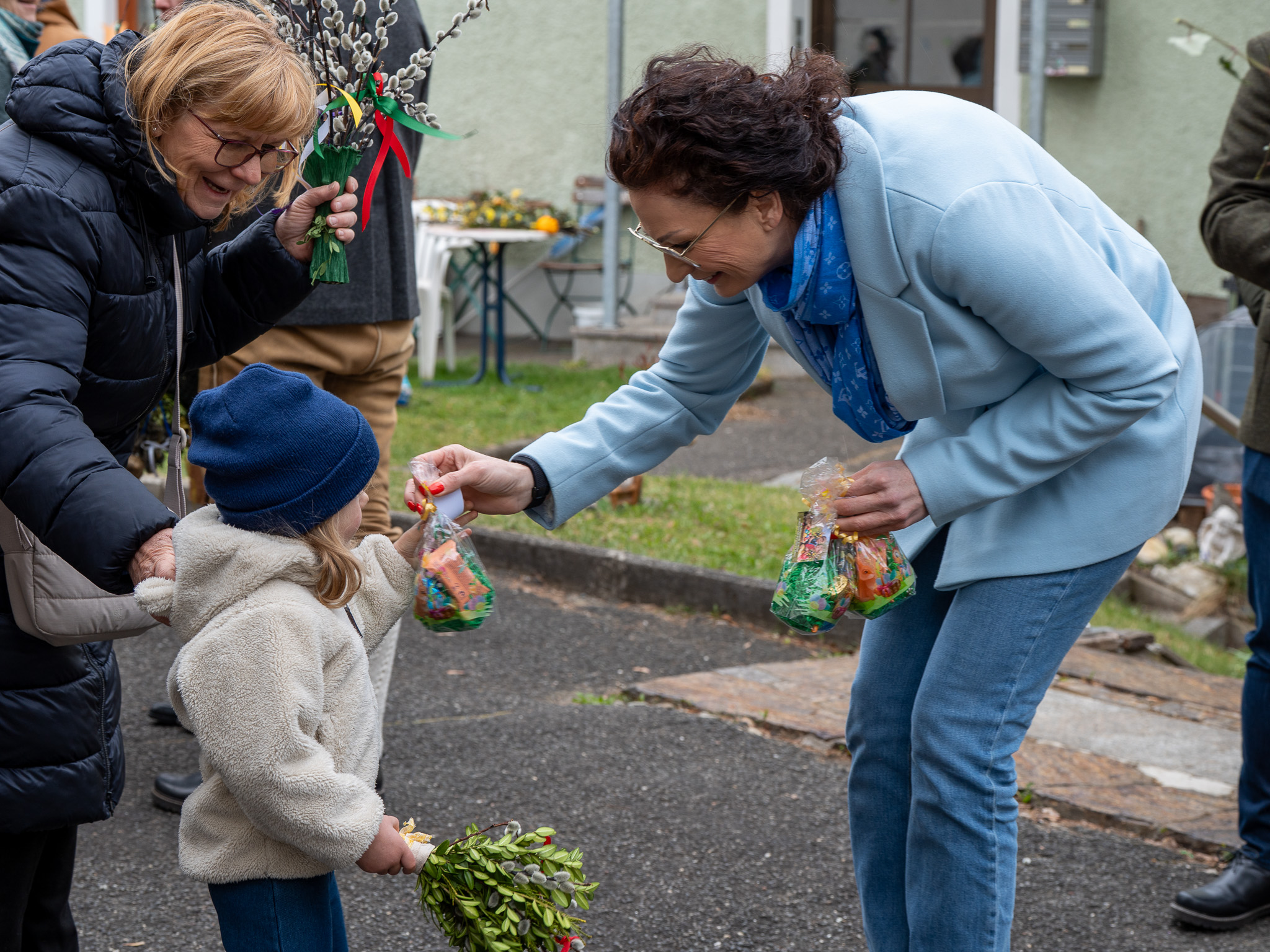 Zum Abschluss sorgten Bürgermeisterin Nicole Sunitsch, 2. Vizebürgermeister Stefan Kreisl und Gemeinderat Franz Kargl für strahlende Kinderaugen, als sie Ostersackerl an die jüngsten Gemeindebürger verteilten.
