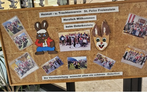 am Samstag fand im Kultursaal der Volksschule eine wunderbare Veranstaltung des Heimat- und Trachtenvereins St. Peter-Freienstein statt. Beim Palmbuschen binden, Ratschen bauen und bei der Osterbastelei konnten zahlreiche Kinder mit viel Freude und Begeisterung teilnehmen.